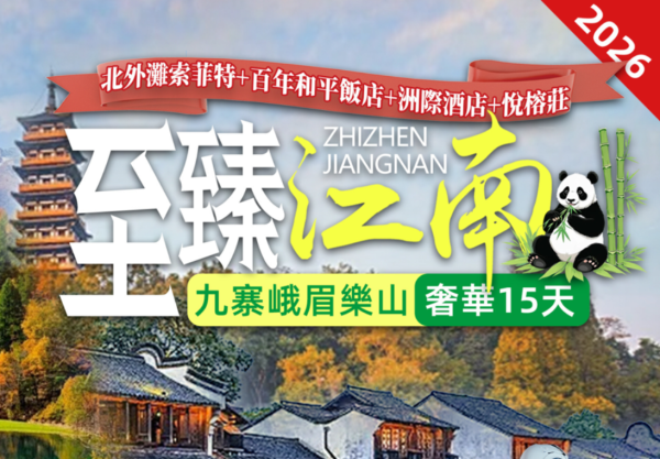 超值 至臻江南・九寨峨眉樂山奢華15天