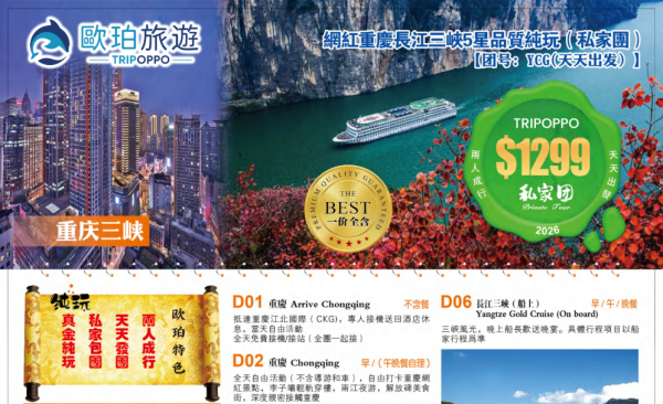 私家團 重慶 长江三峽5星豪華遊輪7日