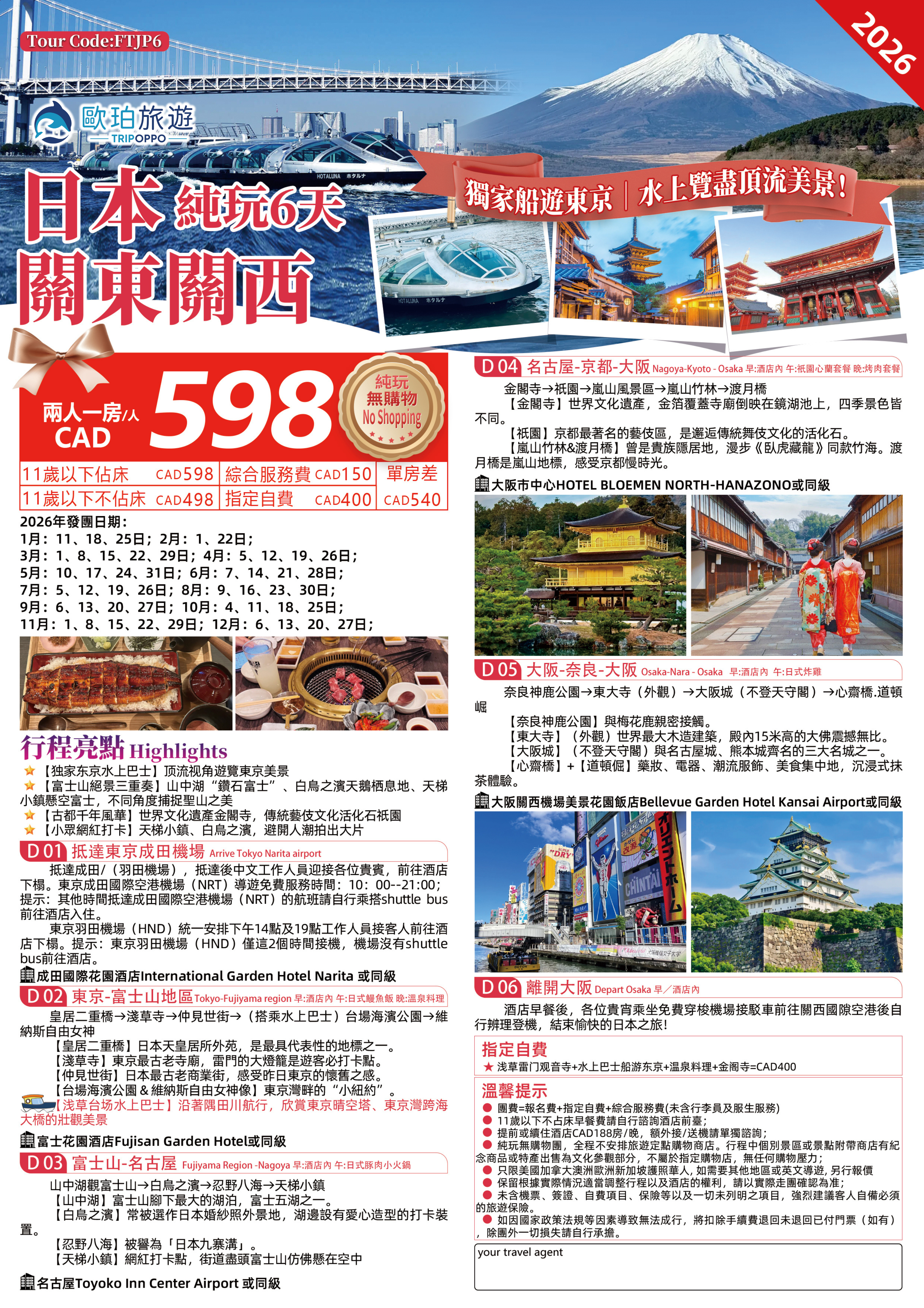 Post tour:大阪名古屋神戶3天【大阪-名古屋城-大須商業街-大須觀音-綠洲21-神戶北野異人館-中華街-神戶港-美利堅公園-大阪】,US$799/人