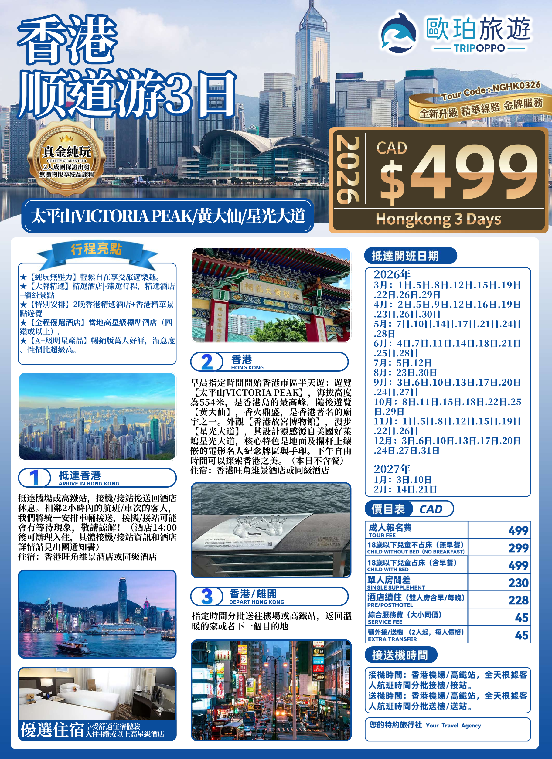 【特別安排】2晚香港精選酒店+香港精華景點遊覽