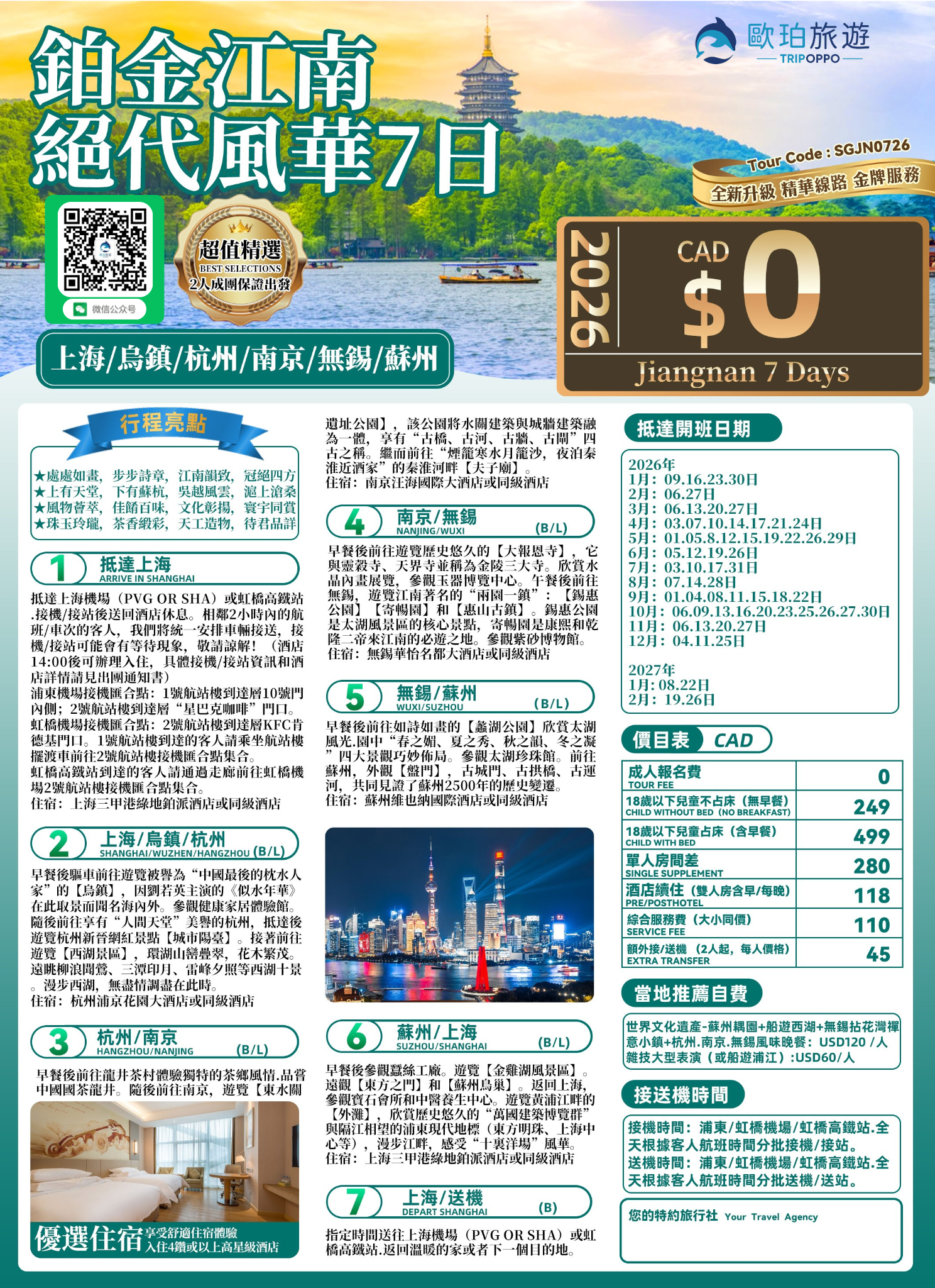 超值 鉑金江南7日