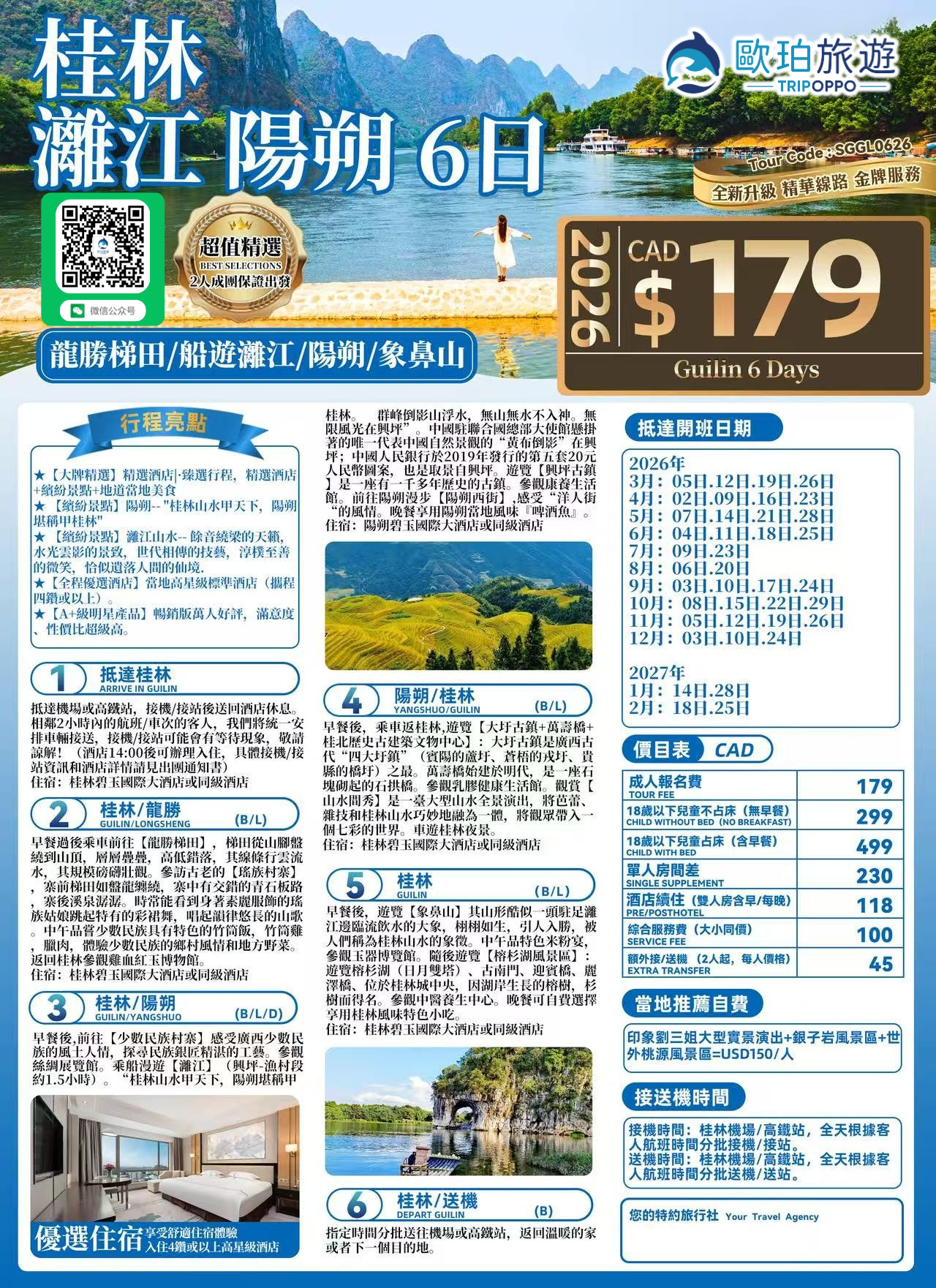 詳情請致電:905-604-6488 Email:cntours@tripoppo.com
