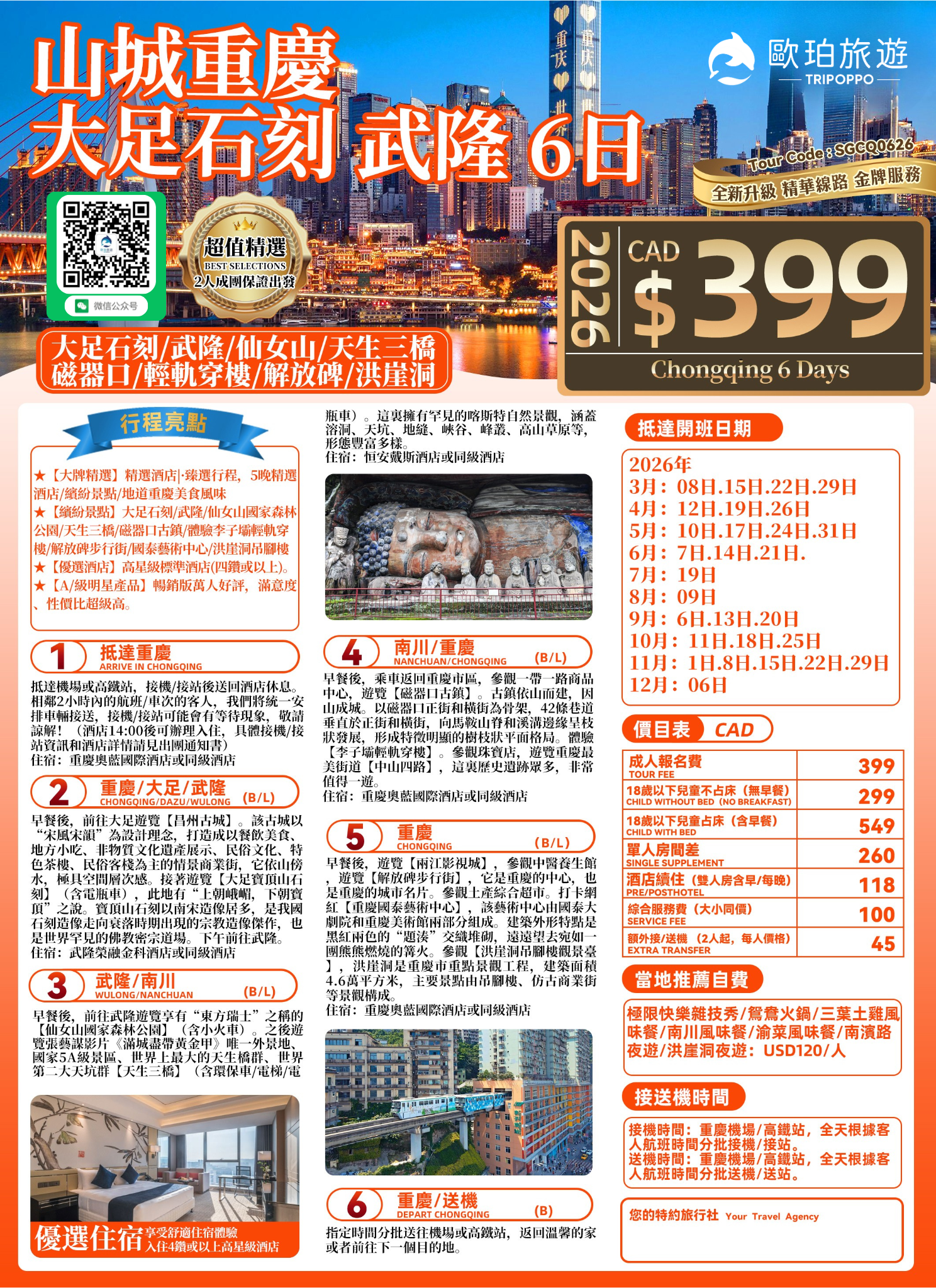 超值 山城重慶 大足石刻武隆6日