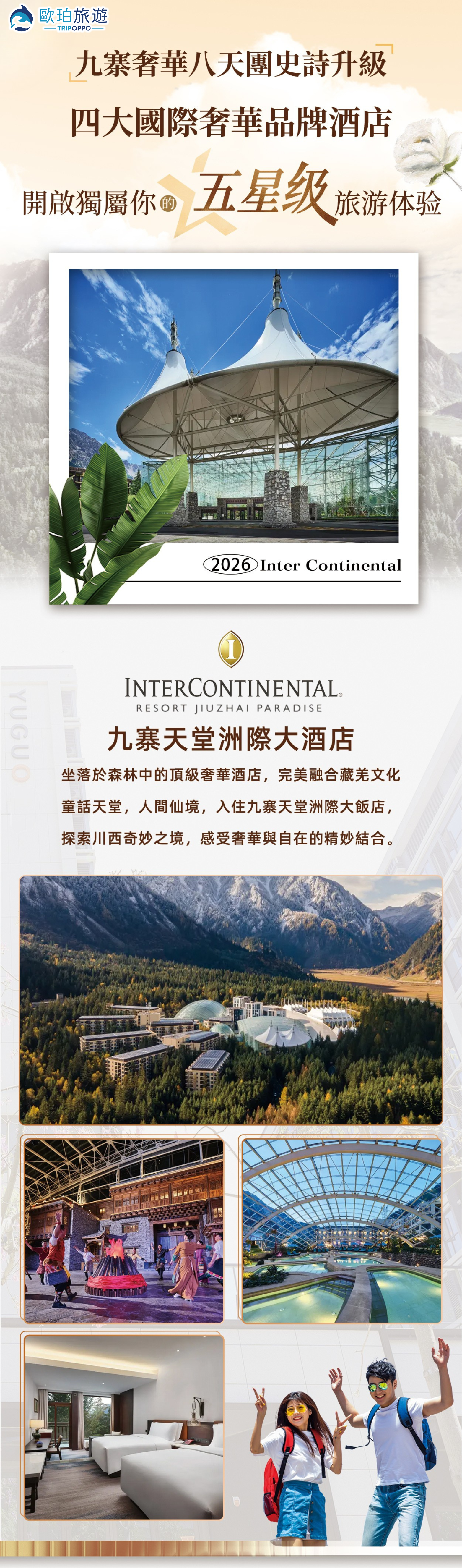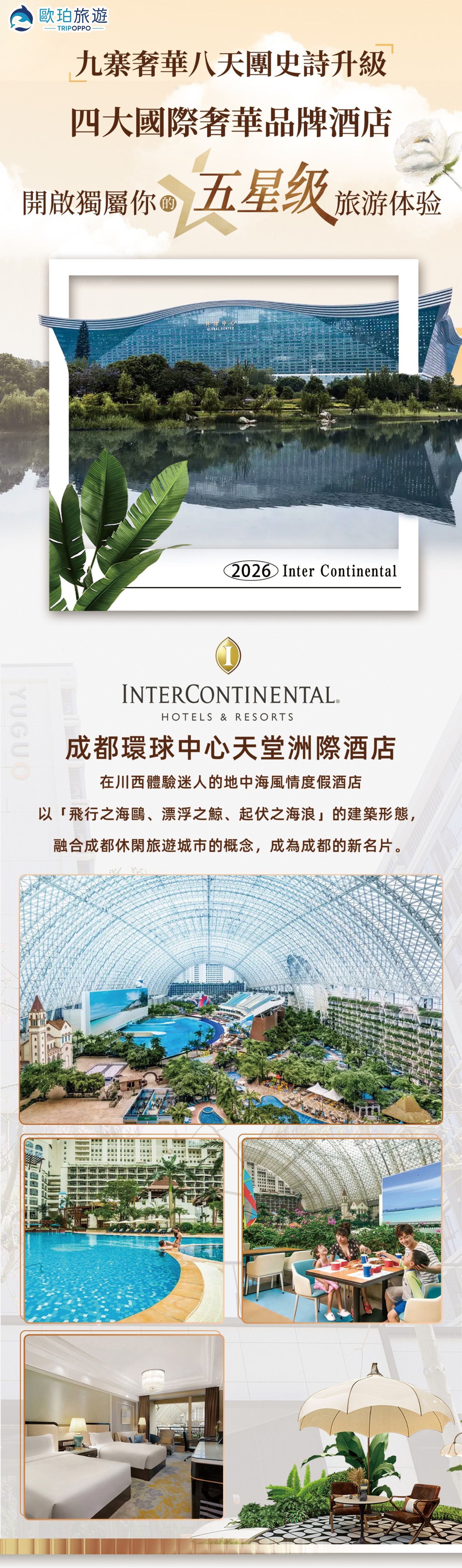 四大國際奢華品牌酒店:成都環球中心天堂洲際+九寨悅榕莊酒店+九寨天堂洲際大酒店+黑龍潭洲際酒店