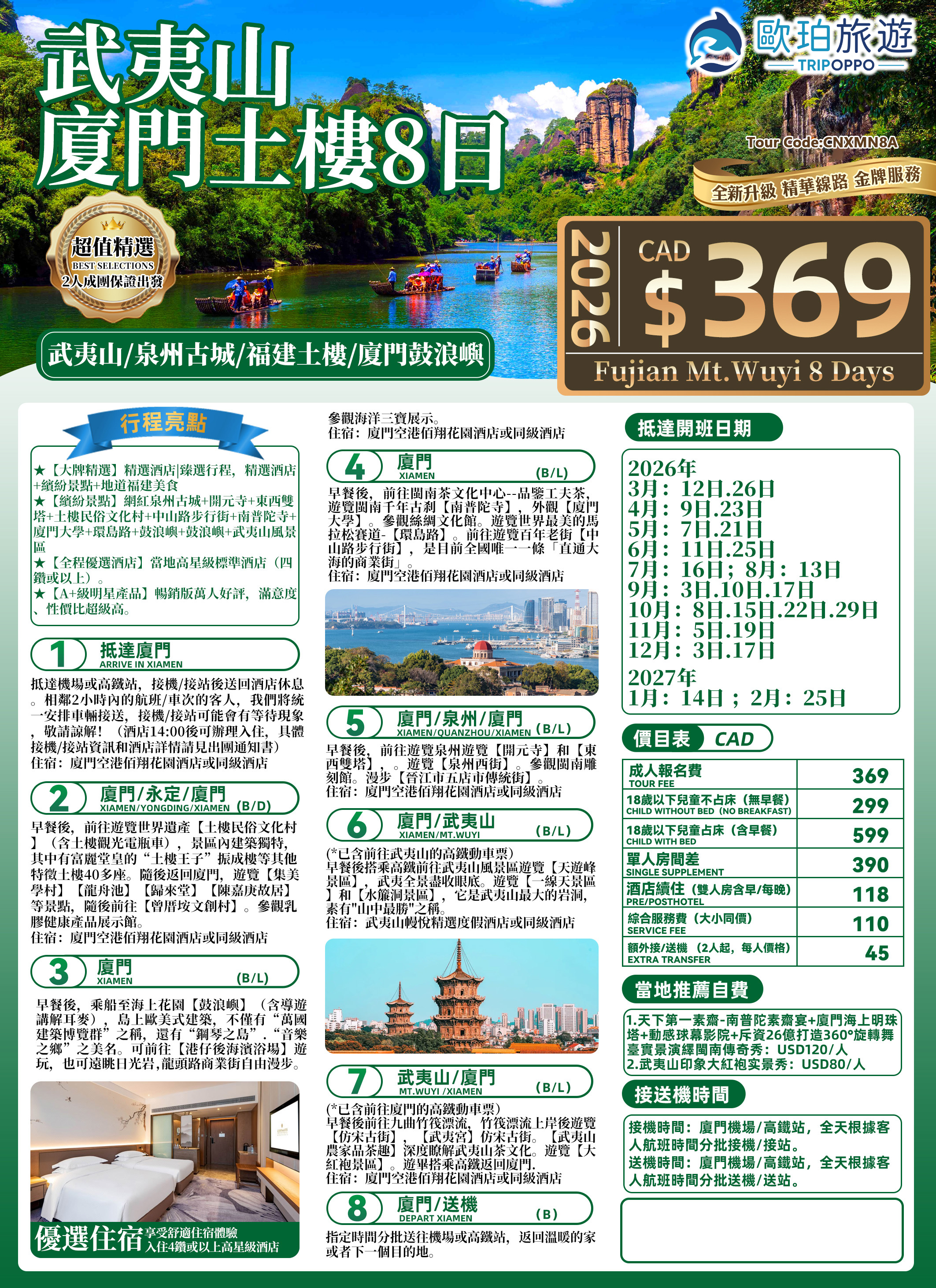 超值 福建土樓武夷山8日