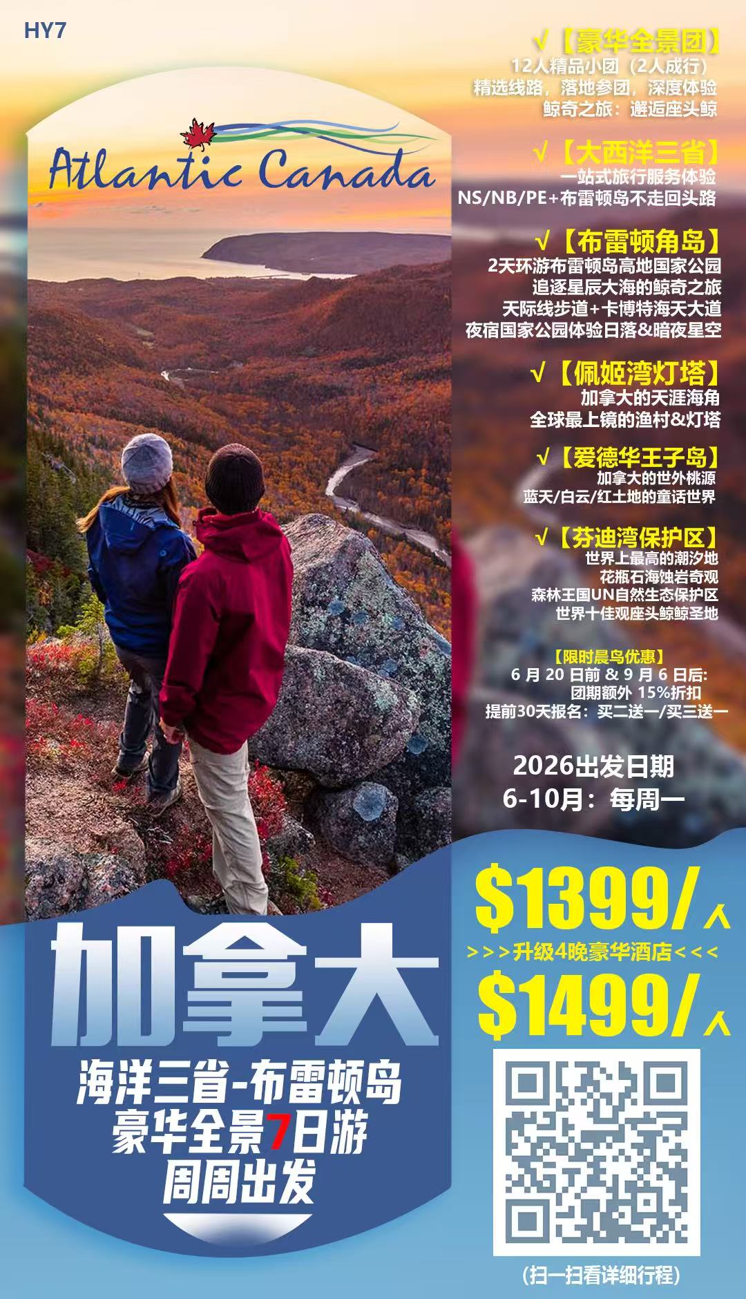 ★飞进加拿大大西洋地区,7天全景玩遍加东海洋三省所有著名景点,体验最原始纯正的大西洋渔村风情,欣赏最壮美的布雷顿角岛风光。