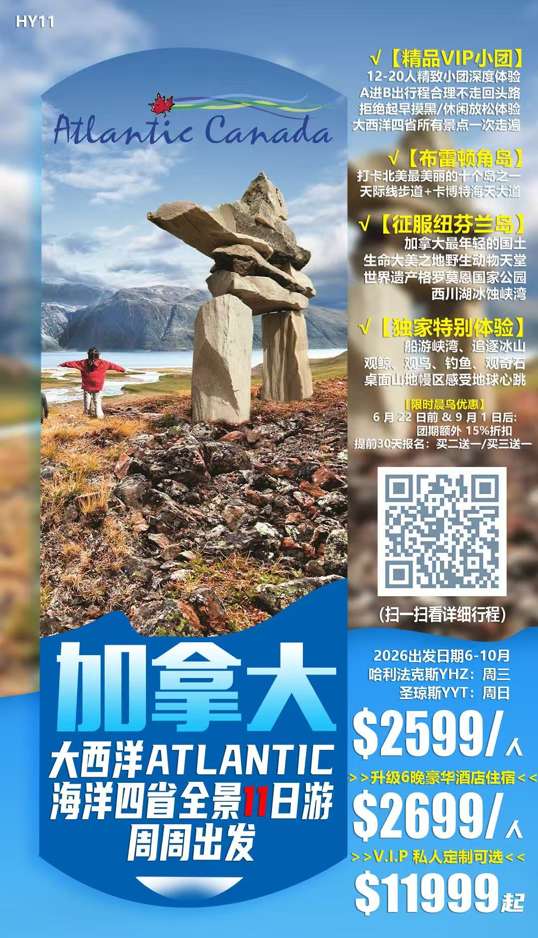★飞进大西洋,11天全景玩遍加东海洋四省所有著名景点,体验最原始纯正的大西洋渔村风情,行程紧凑但不劳累,充分保证了旅行质量以及乘客的舒适度。