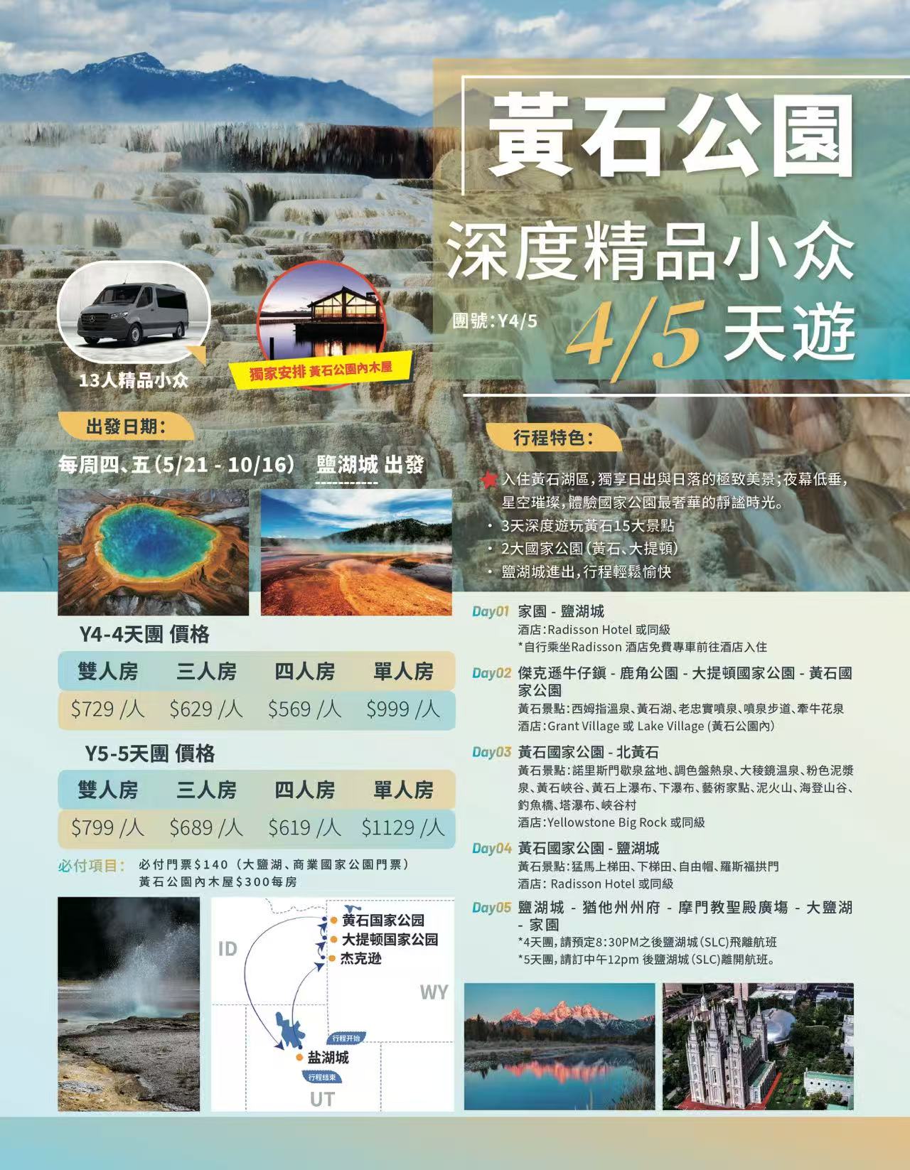 全线美西及黄石公园 系列产品 四月底前報名: 全年出發日期 均享 10%OFF 优惠