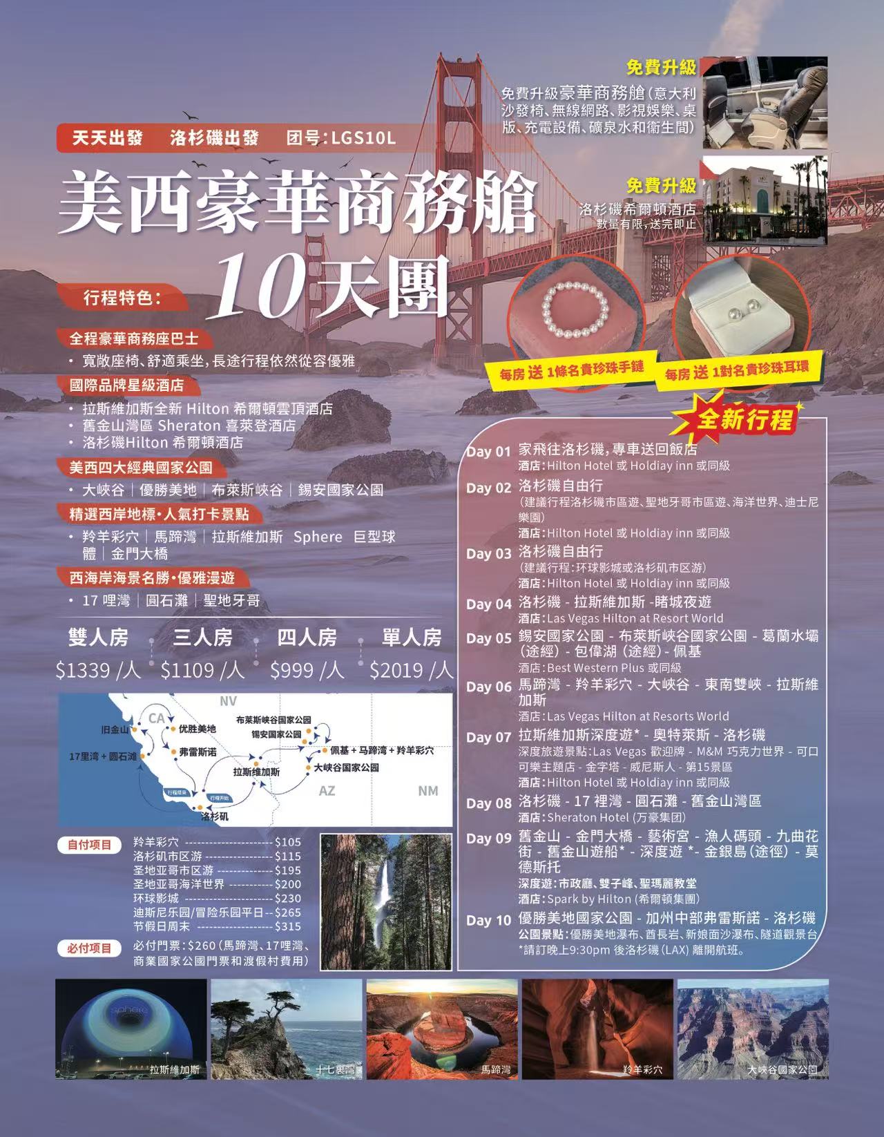美國 美西豪華商務艙10天團 (陸地商務艙大巴)