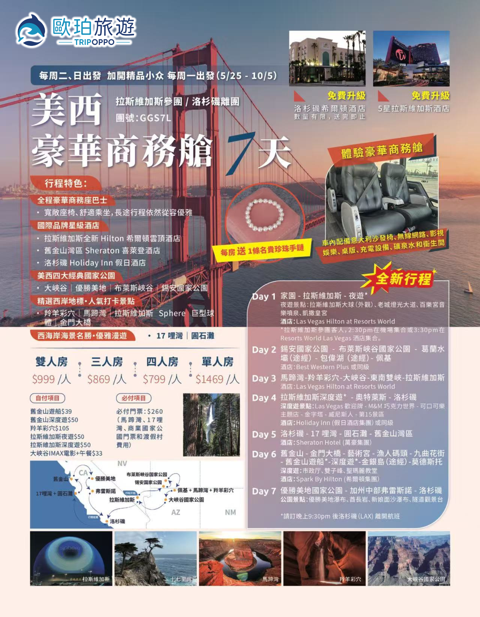 SAL 系列 旧金山3日+拉斯维加斯4日(周四出发):4/2、4/9、4/16