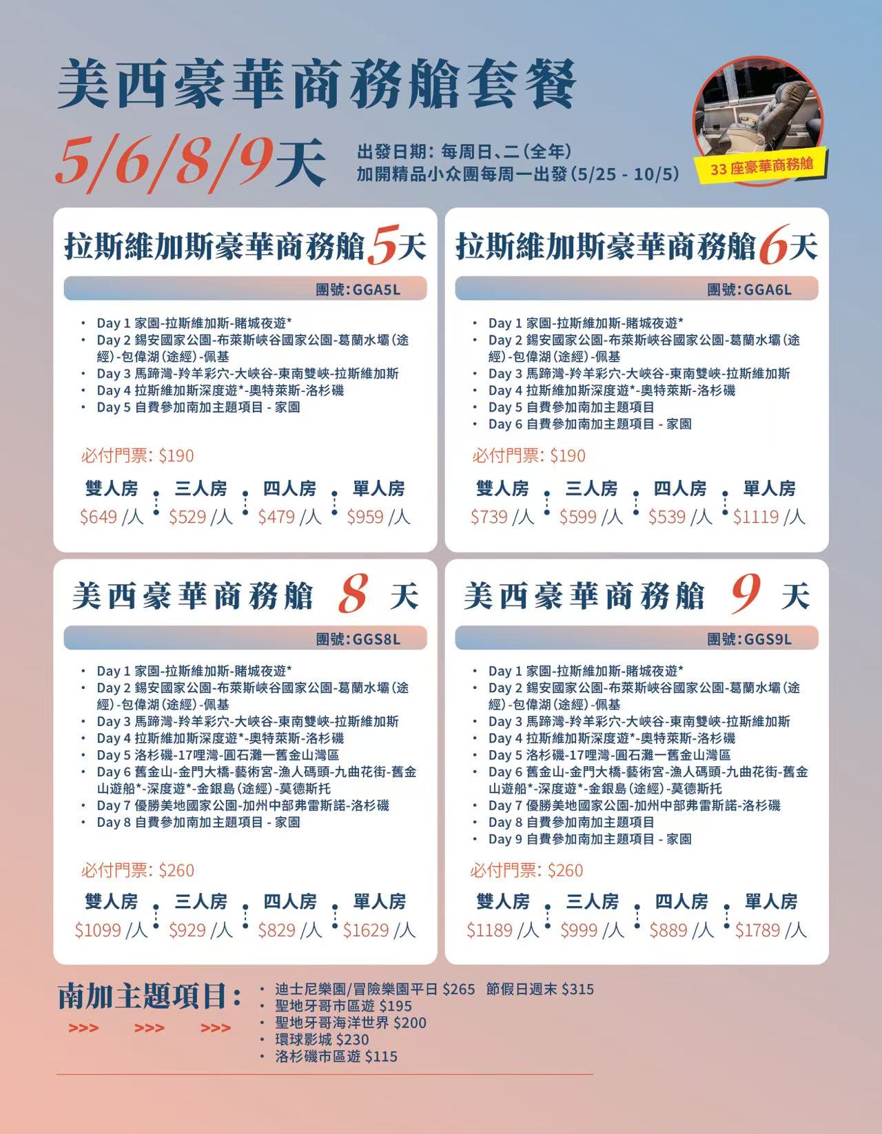 GAL 系列 拉斯维加斯4日+旧金山3日(周日出发):4/5、4/12