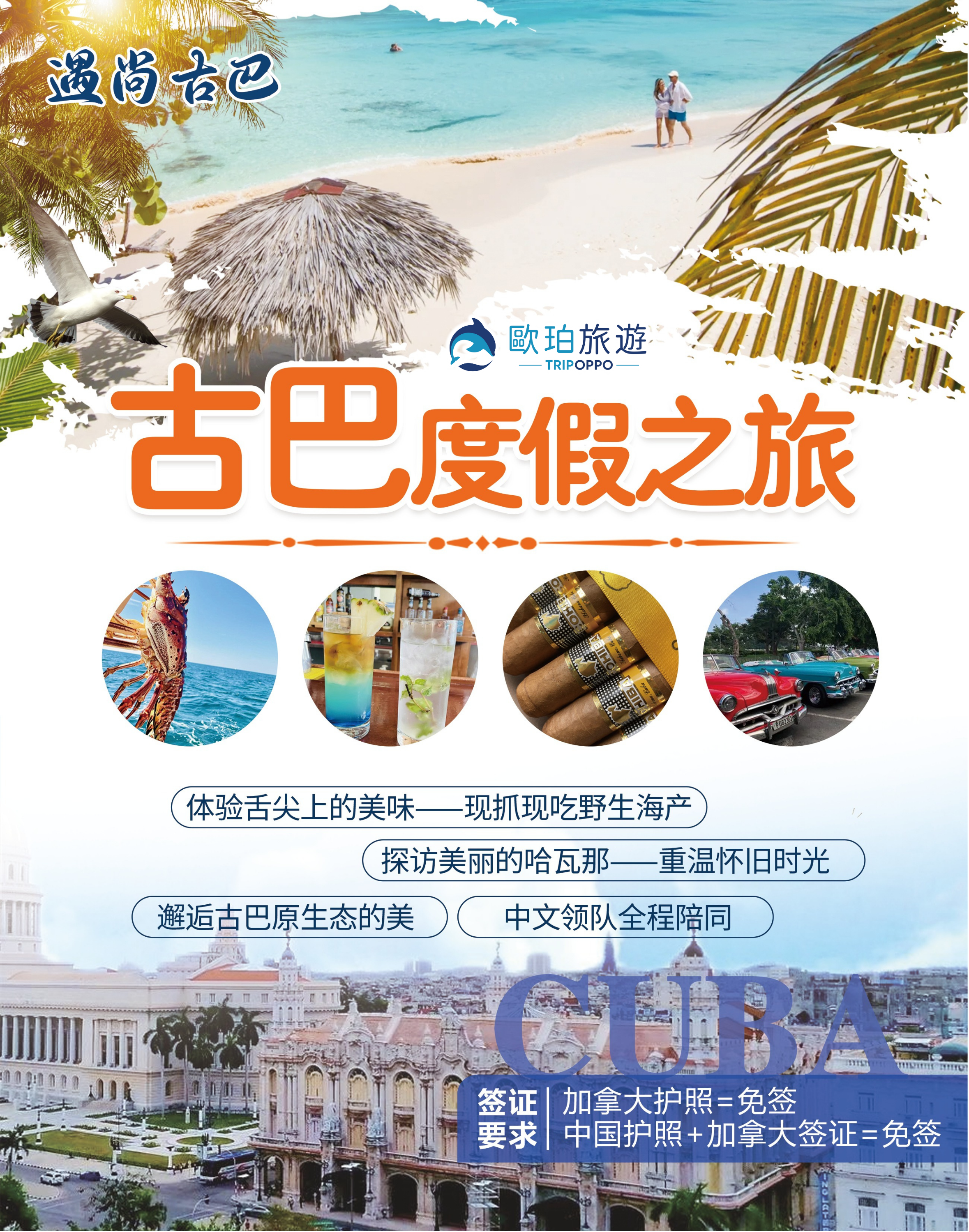 古巴,無疑就是一個神奇的國度。不僅因為陽光明媚,熱情似火,而且價廉物美,充滿地域風情。而街角的小酒吧,卻又可以讓你在蘭姆酒的甘甜與雪茄的氨水味之間,體會到一種時光流轉的快感。更重要的一點:去古巴對加拿大的新移民,持旅遊簽證的中國夥伴和中國留學生來說也是好福利,因為古巴免簽證!從多倫多出發只要3小時!