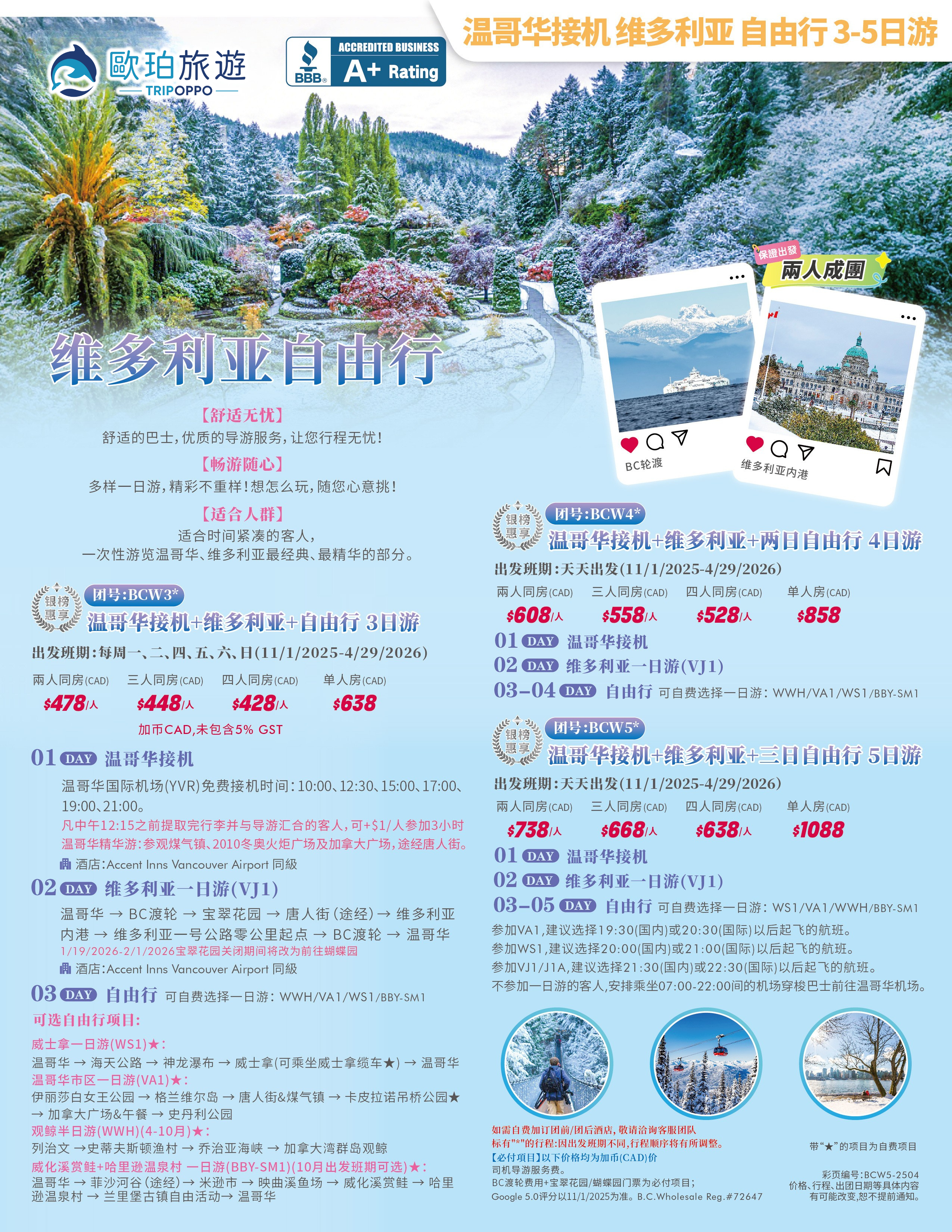 加西 溫哥華接機 維多利亞自由行3–5日遊