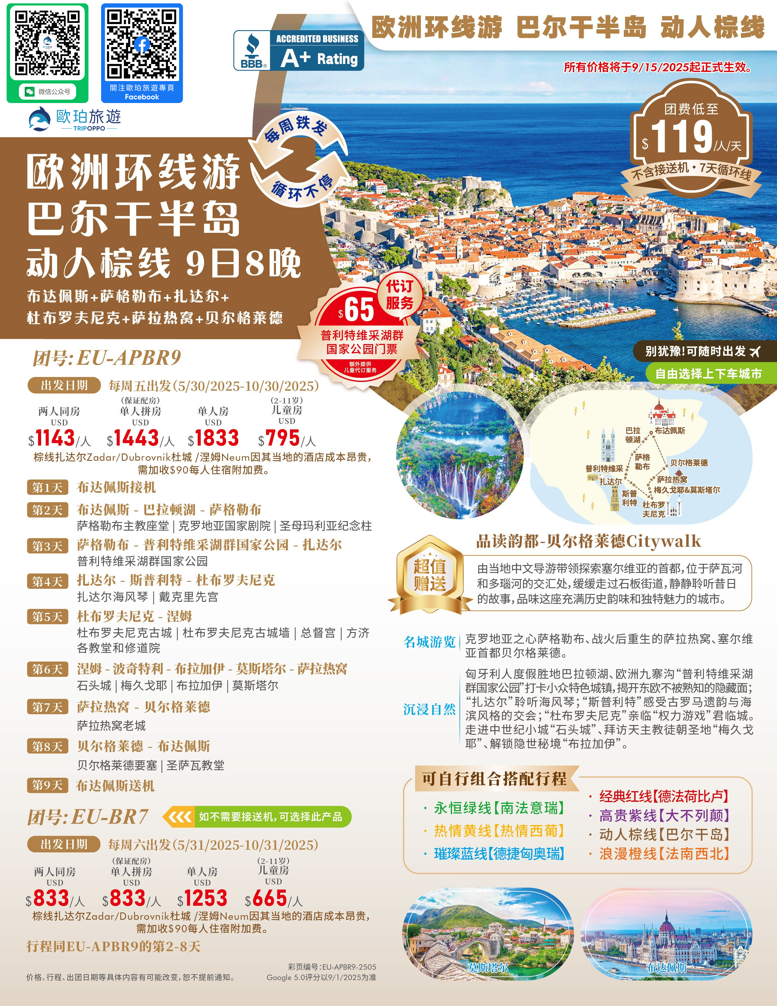 【動人棕線】東歐之旅 | 布達佩斯+薩格勒佈+扎達爾+杜佈羅夫尼克+薩拉熱窩+貝爾格萊德 7~9天遊