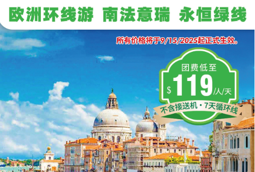 所有环线团1位导游全程陪同,中、英文双语讲解