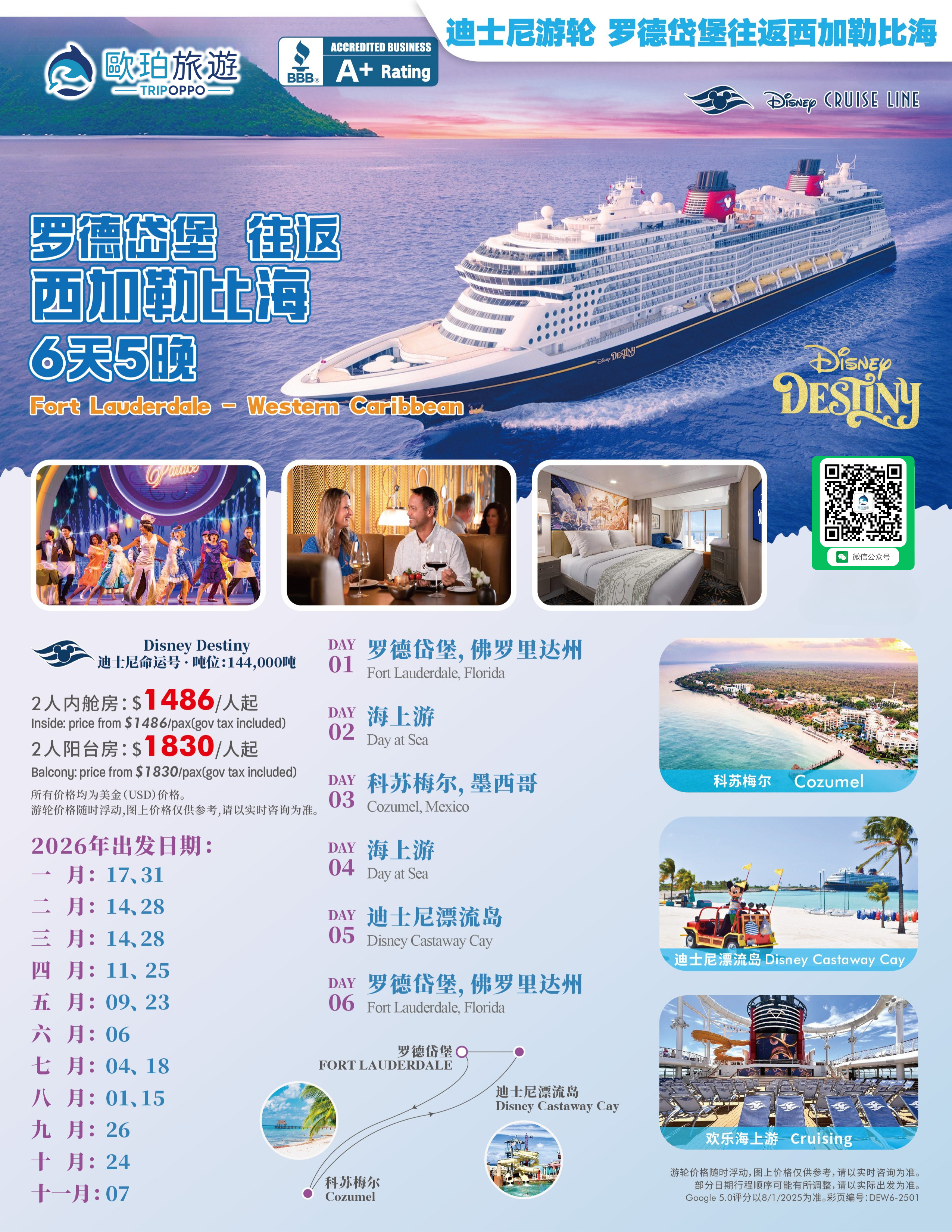 黄金航线:3-5晚航程,从罗德岱堡出发,前往巴哈马&西加勒比!