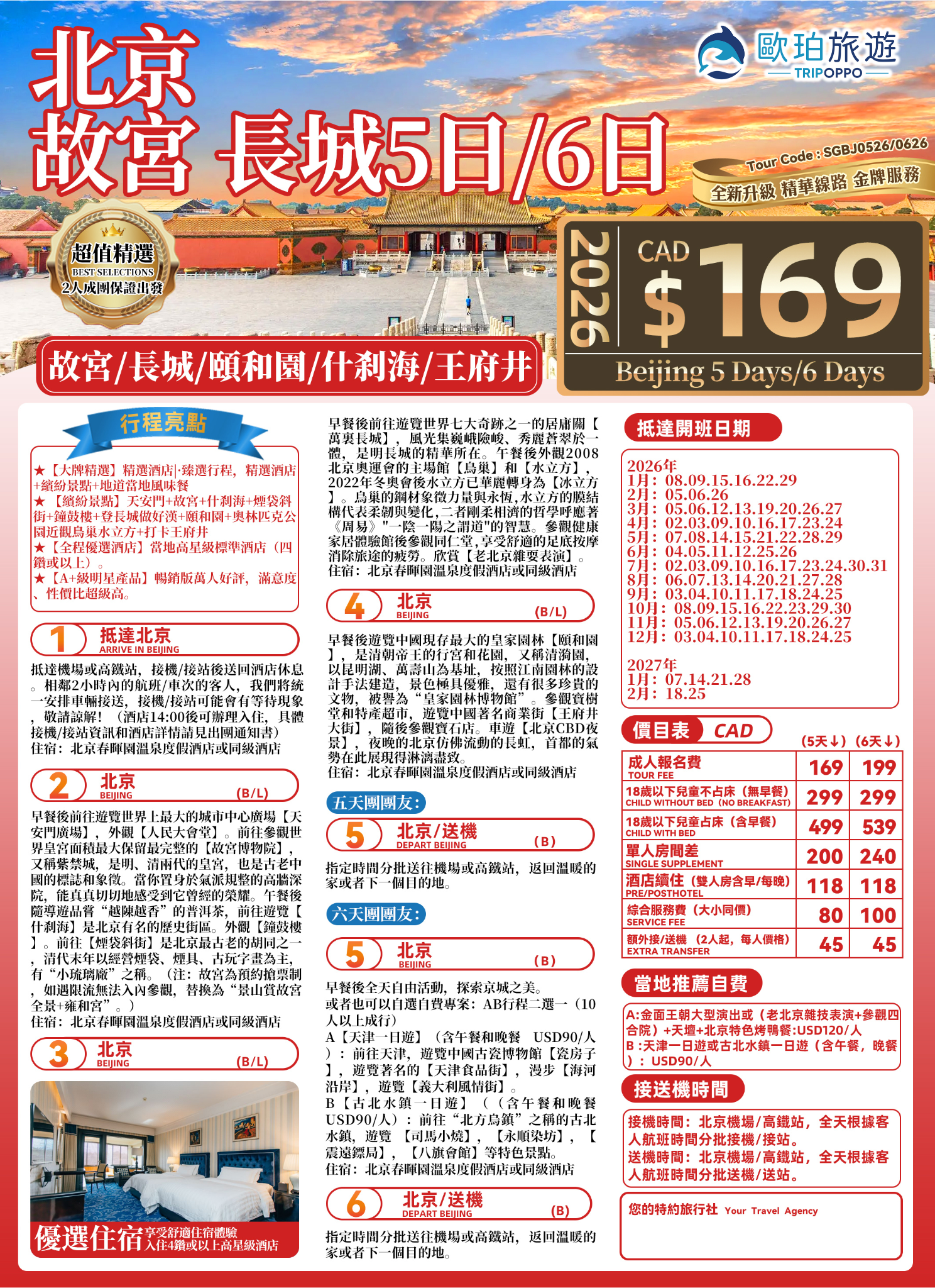詳情請致電:905-604-6488 Email:cntours@tripoppo.com