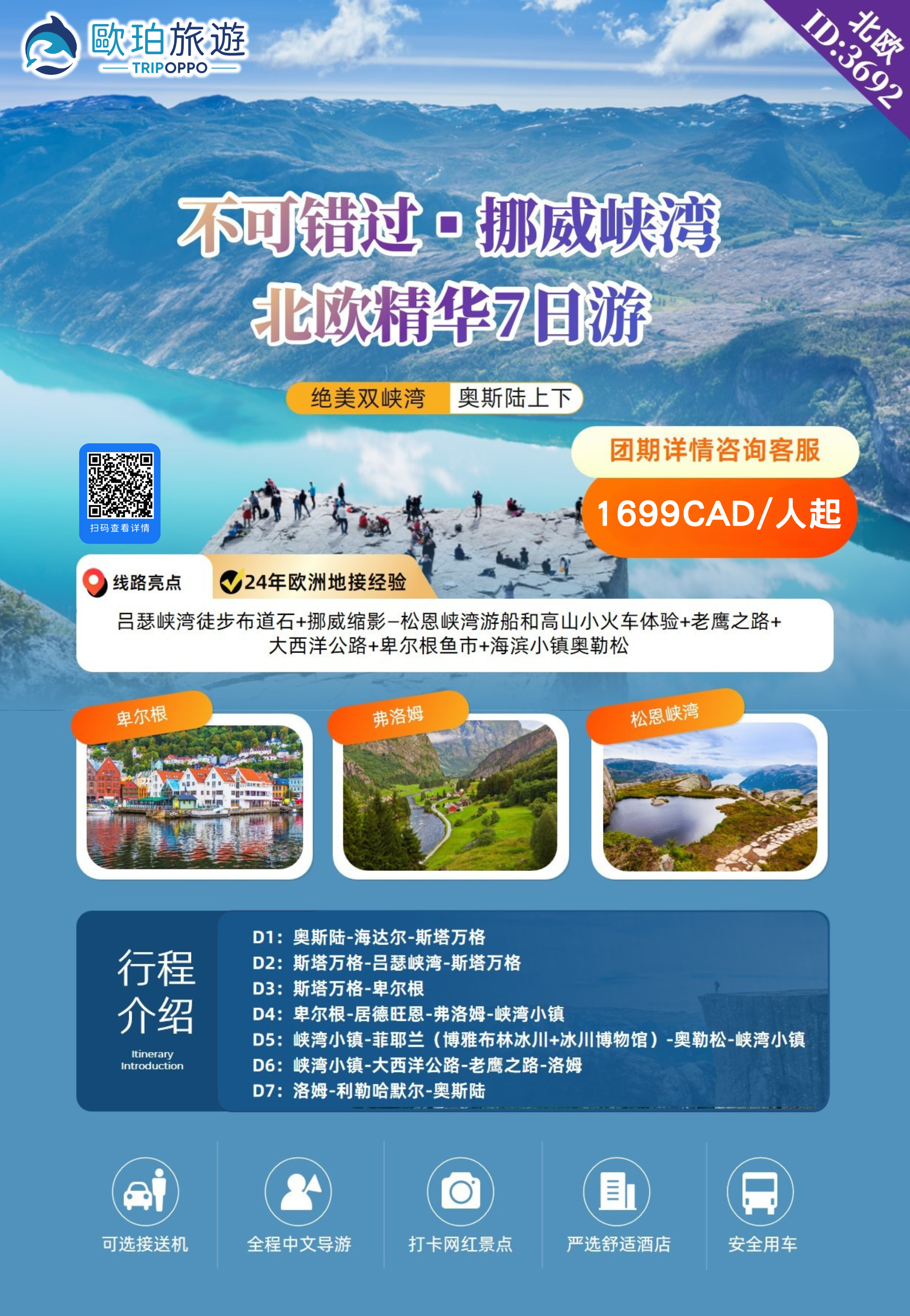 【優品甄選】不可錯過的 北歐挪威峽灣精華7日遊(奧斯陸往返)