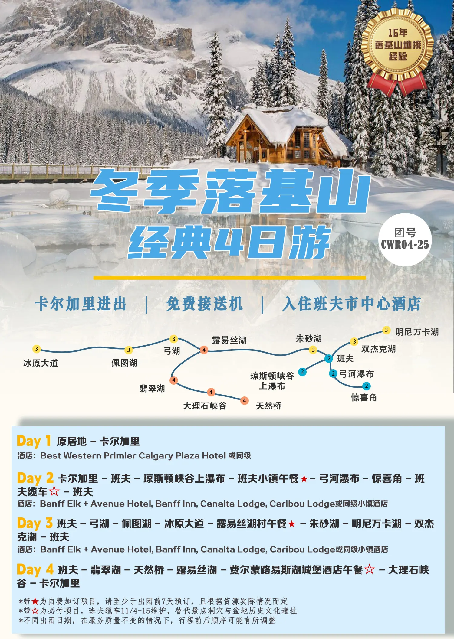 【冬季热卖】落基山班夫国家公园跟团游,2晚班夫镇+1晚卡尔加里,七大名湖+冰原大道+班夫缆车,
