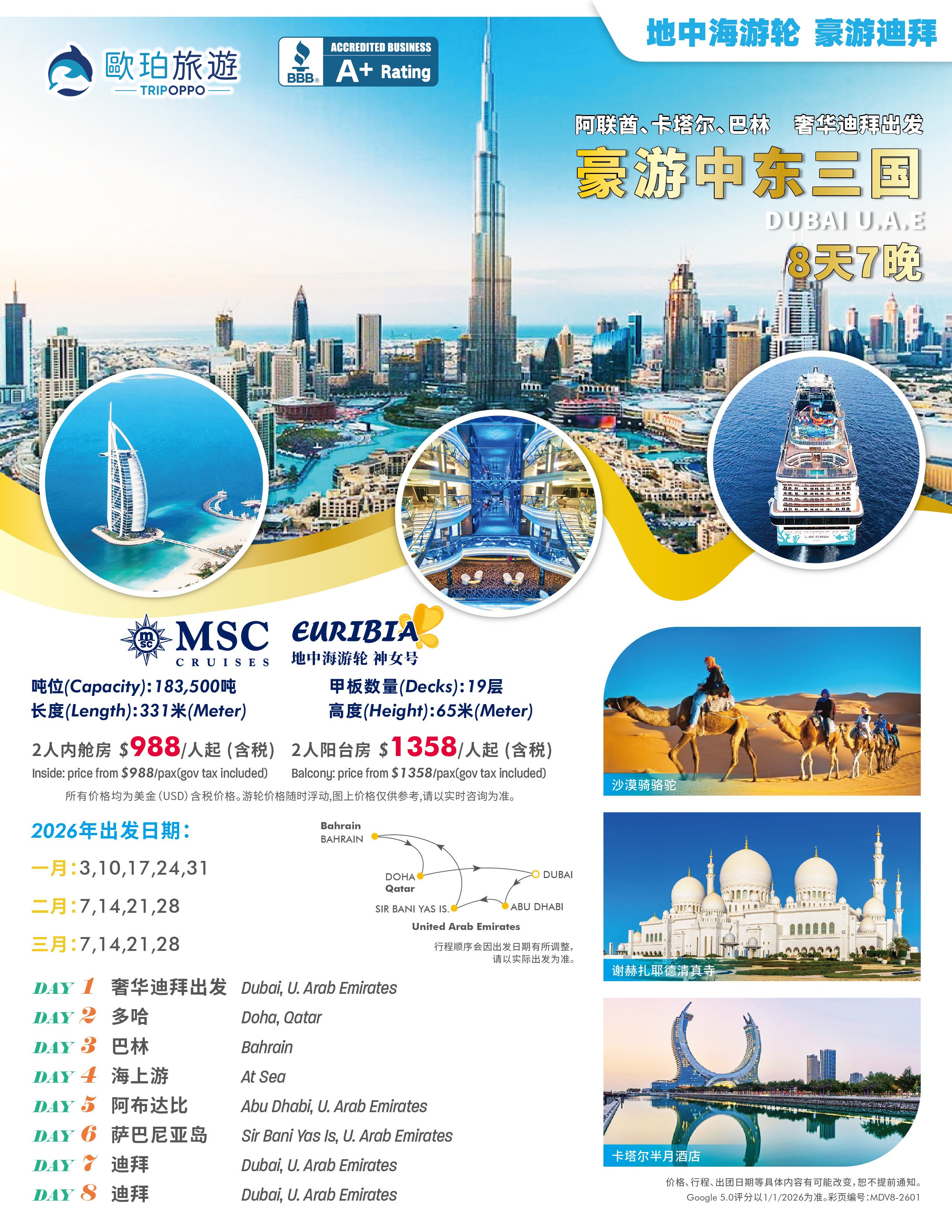 點擊了解 可選 尊享迪拜豪华游览套餐:(2026年1-3月)