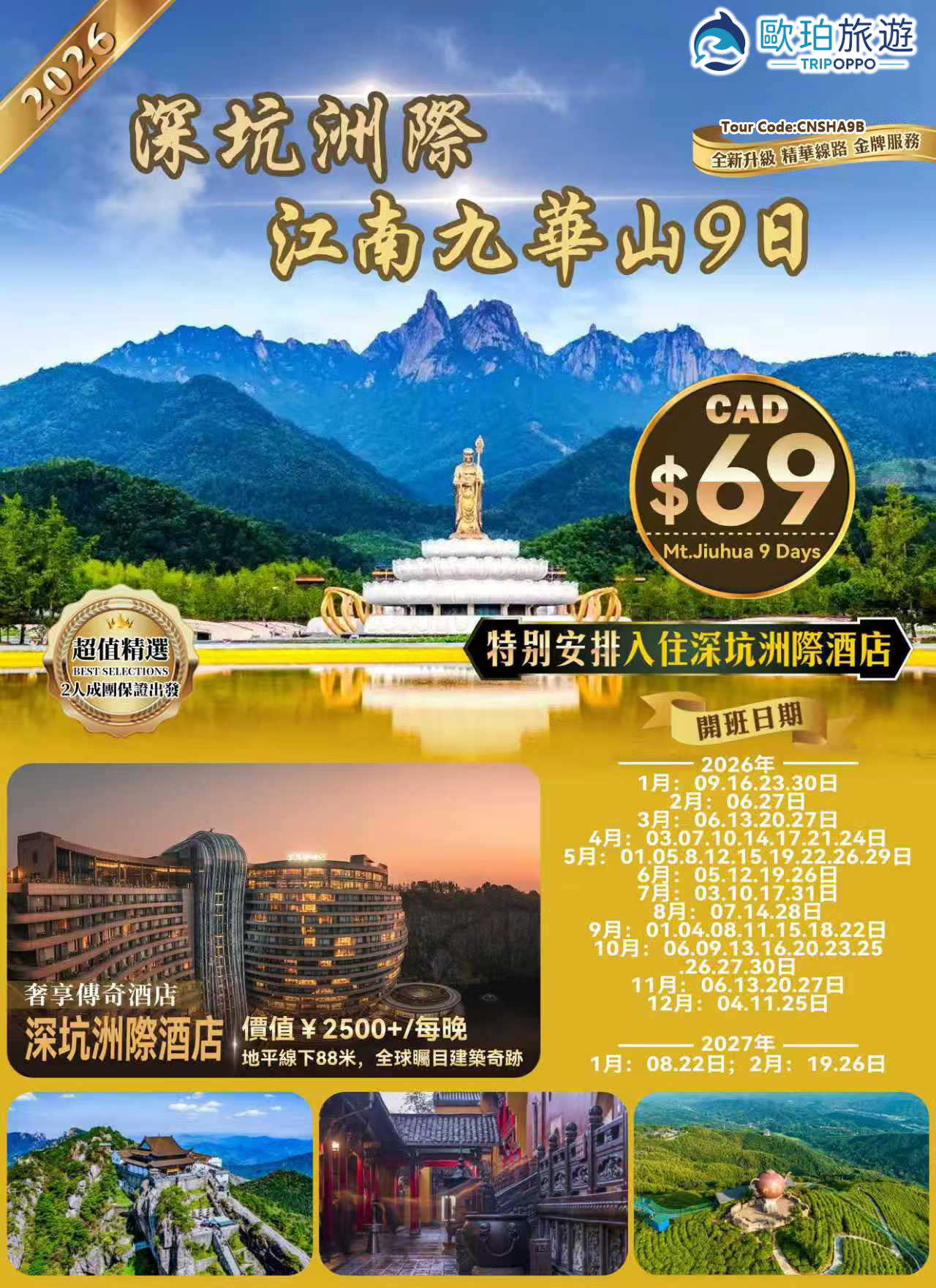 ★【優選行程】東南第一山-九華山,烏鎮東柵景區,西湖景區,夫子廟,大報恩寺遺址公園,錫惠公園,寄暢園,惠山古鎮,太湖風景區,,金雞湖風景區,上海灘:各有各的歷史,各有各的風情。
