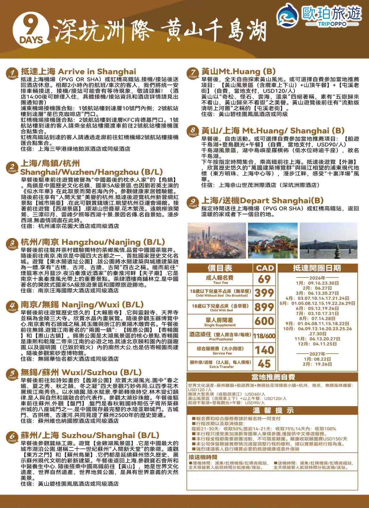 ★【優選行程】黃山風景區,千島湖風景區,烏鎮東柵景區,西湖景區,夫子廟,大報恩寺遺址公園,錫惠公園,寄暢園,惠山古鎮,太湖風景區,,金雞湖風景區,上海灘:各有各的歷史,各有各的風情。