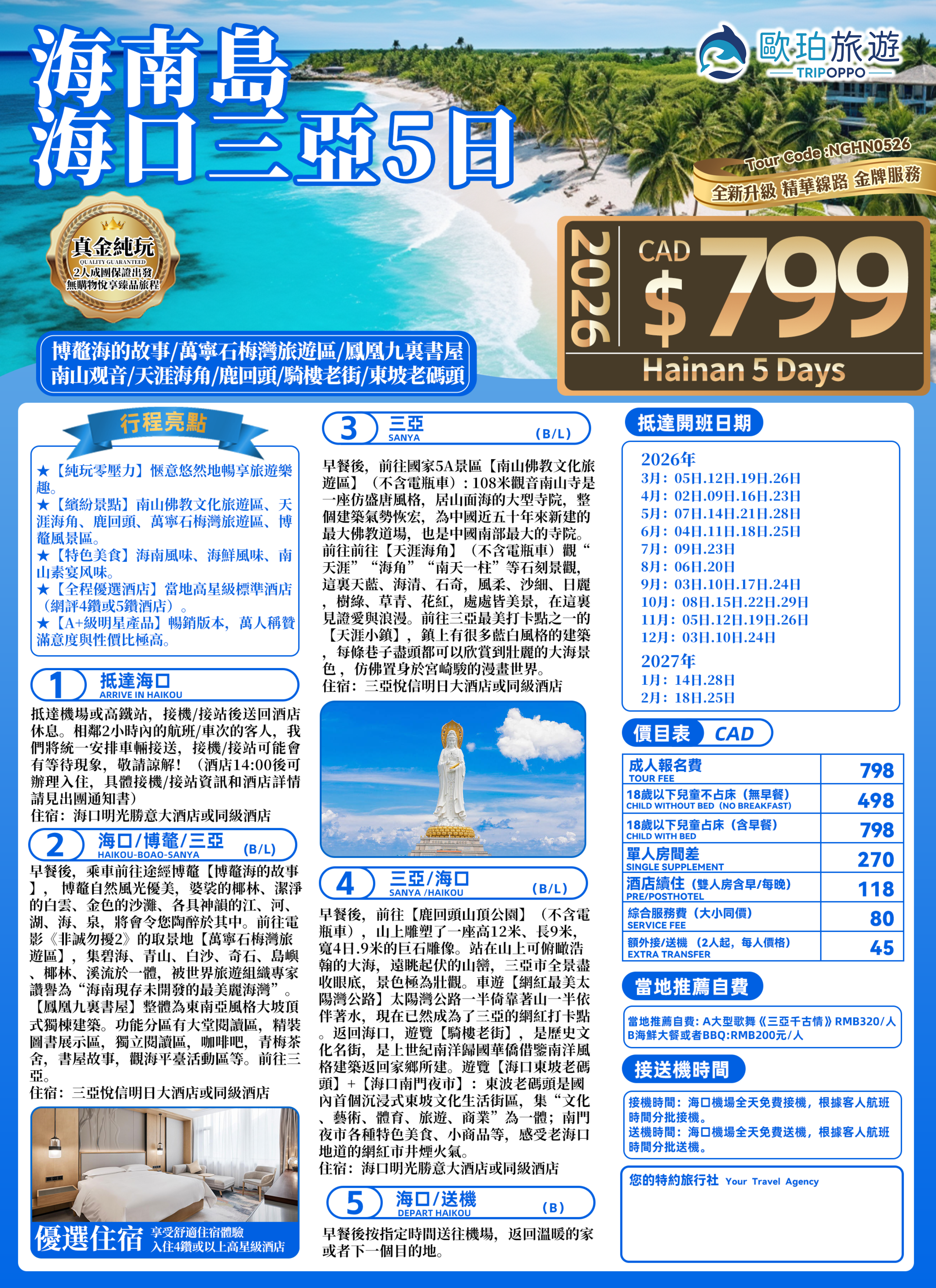 詳情請致電:905-604-6488 Email:cntours@tripoppo.com
