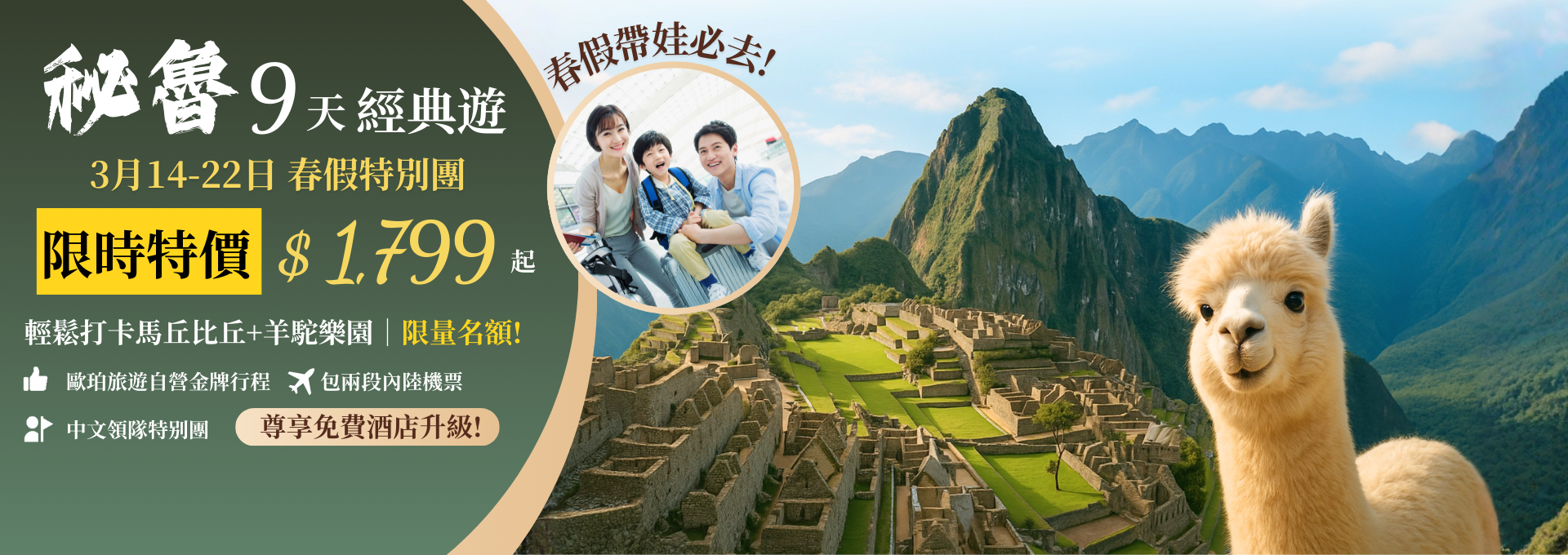 $1,799 CAD 起・含秘魯兩段內陸機票