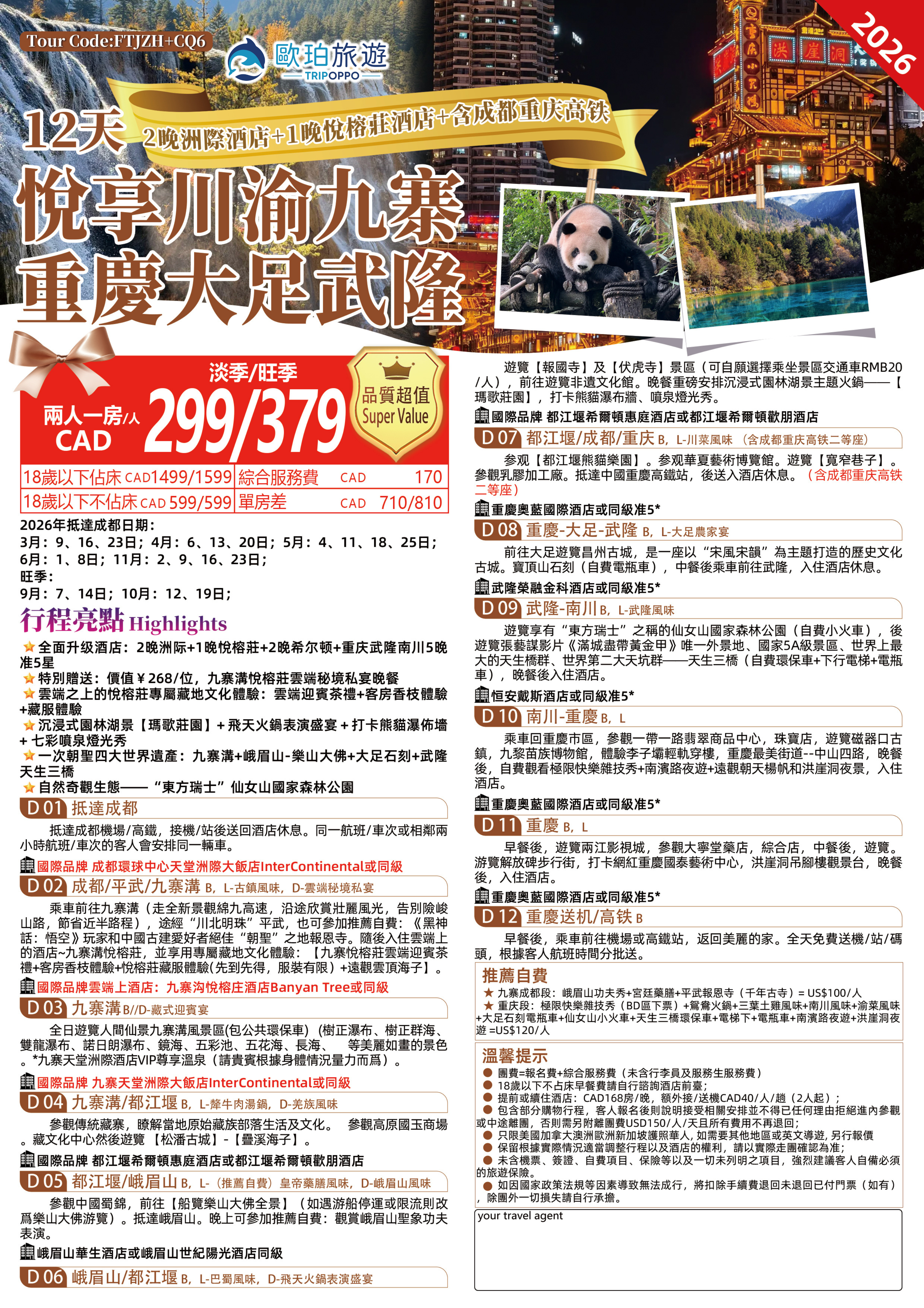 一次朝聖四大世界遺產:九寨溝+峨眉山-樂山大佛+大足石刻+武隆天生三橋