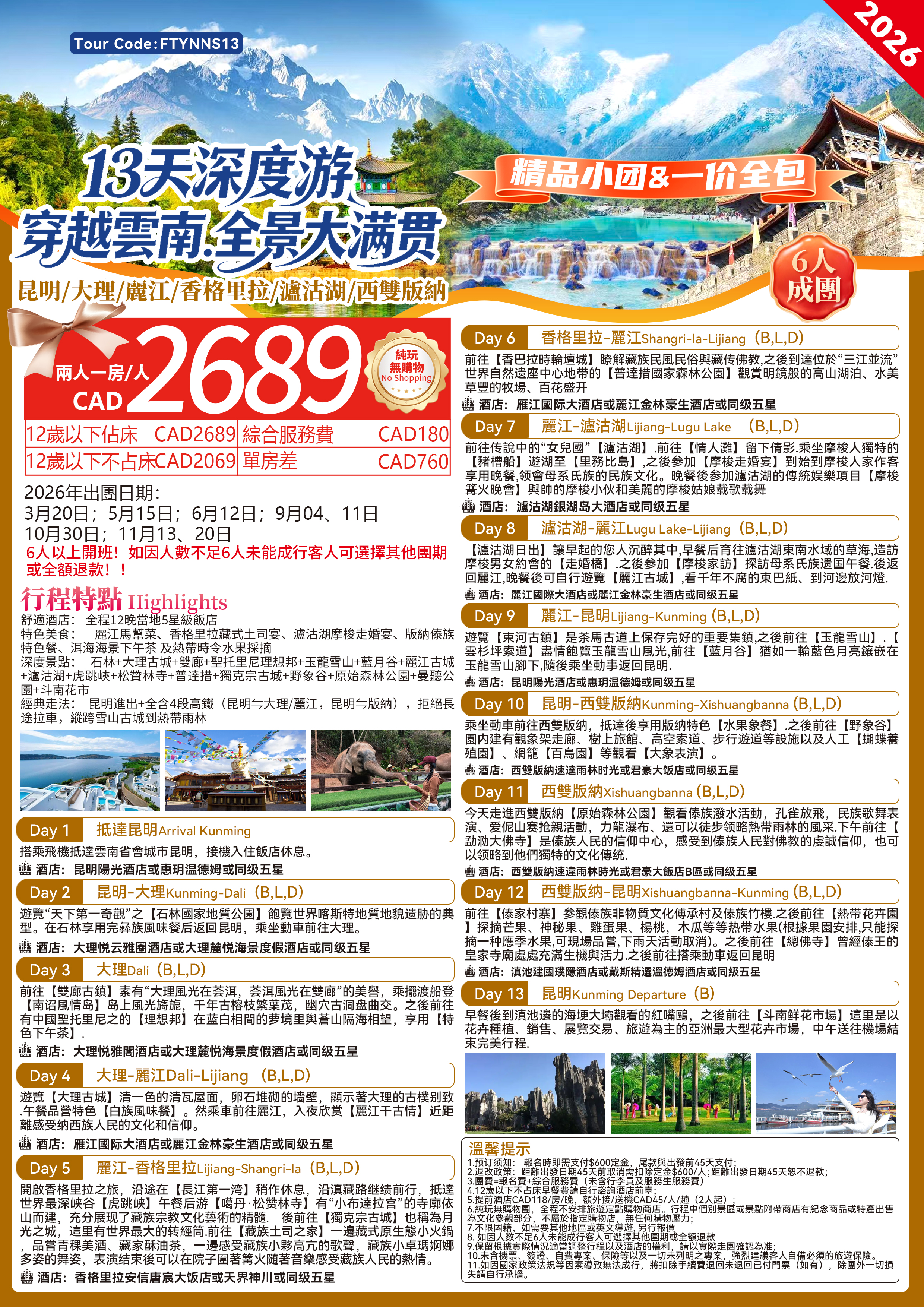 詳情請致電:905-604-6488 Email:cntours@tripoppo.com