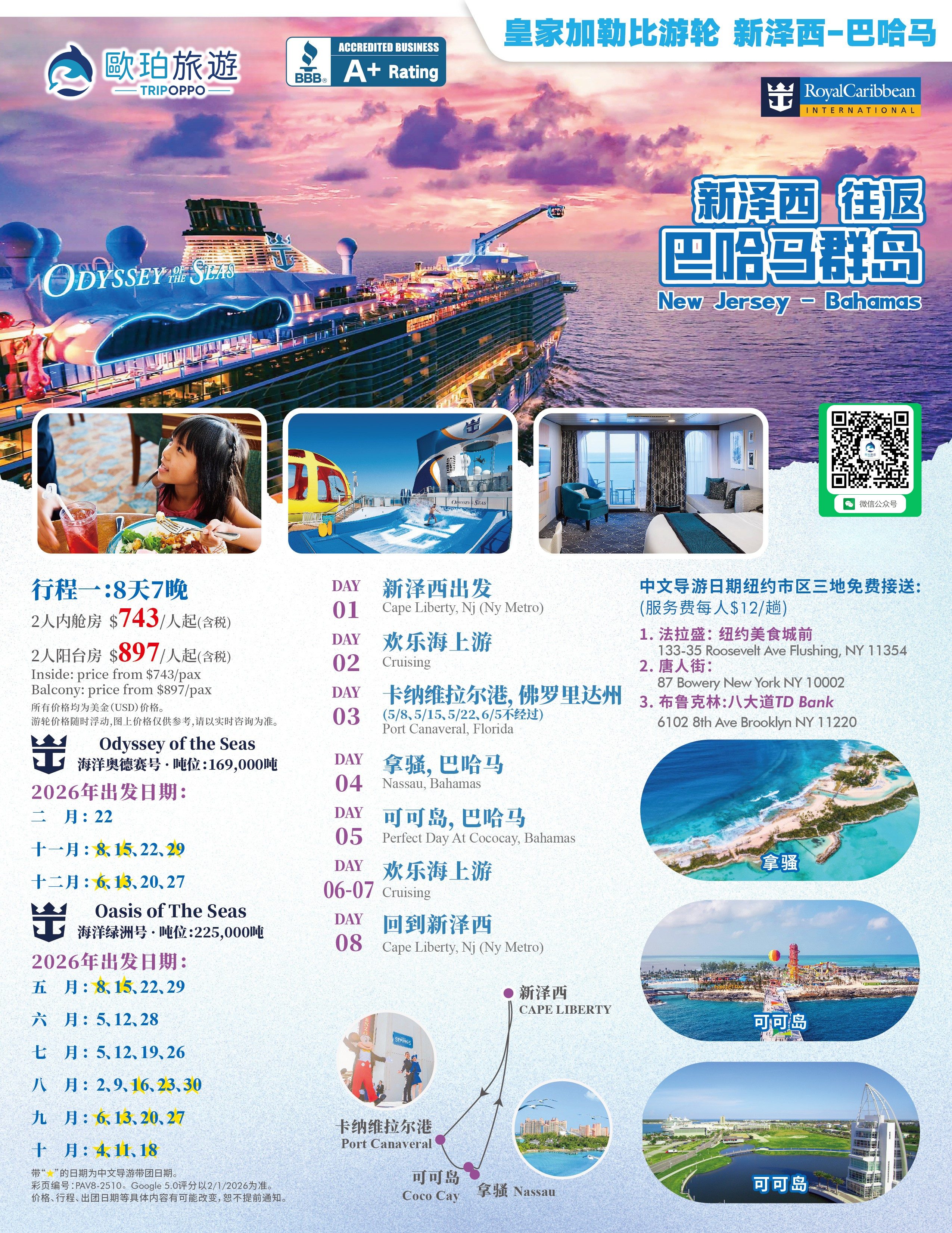 【新泽西⇌巴哈马】8天7晚&9天8晚浪遍巴哈马!